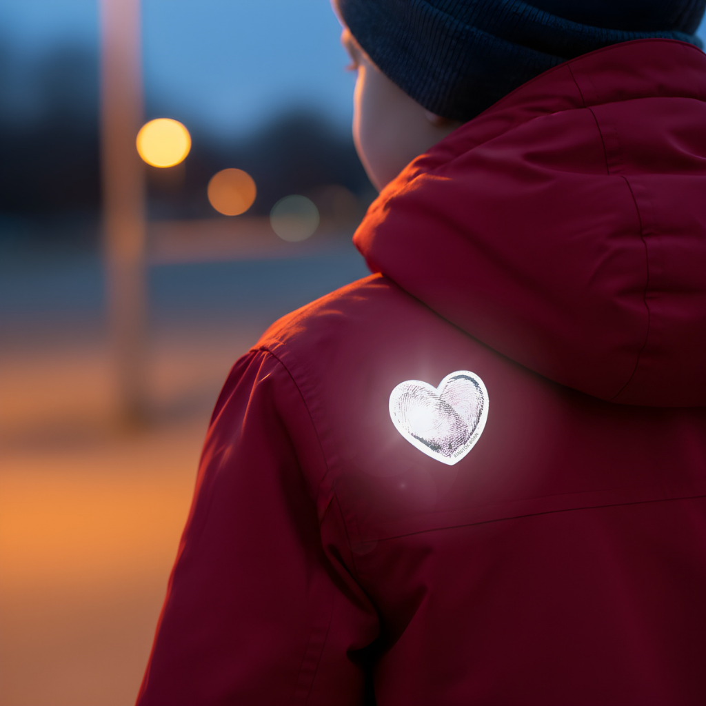 Hver límmiði er um 4-5 cm í þvermál og henta því vel til að auka sýnileika í myrkri hjá yngri börnum sem nota minni stærðir af fötum.