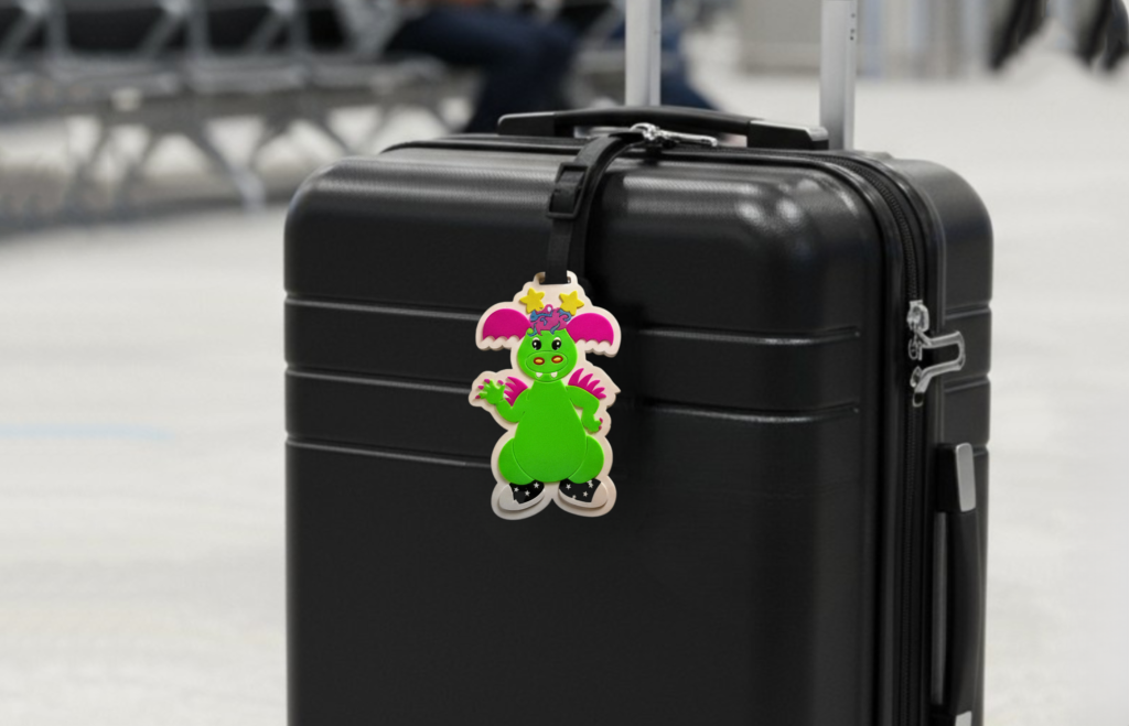 Litríkt og skemmtilegt töskumerki með Töfradrekanum okkar sem gerir töskuna þína auðþekkjanlega. Passar fullkomlega á skólatöskur, ferðatöskur, bakpoka, veski eða annað.